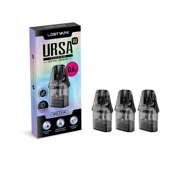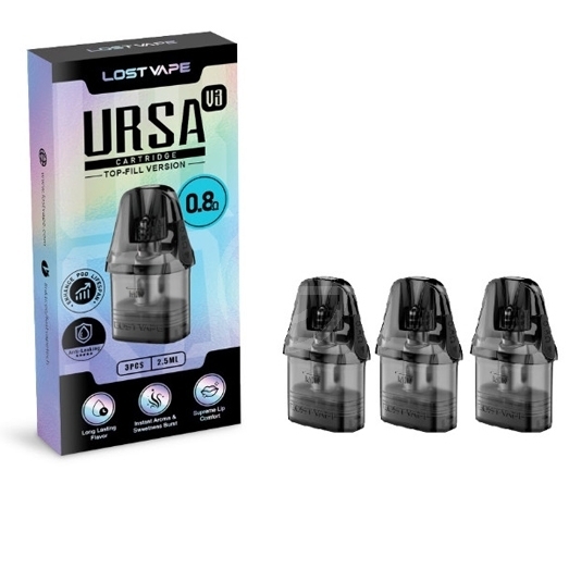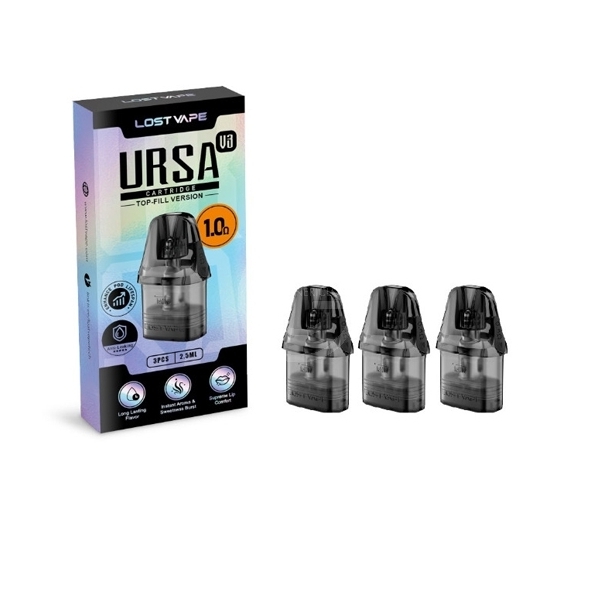 Pack de 3 cartouches de remplacement pour pod Ursa Nano de chez Lost Vape. Contenance de 2.5 ml et son remplissage se fera très simplement. Compatible avec tous les modèles Ursa.
