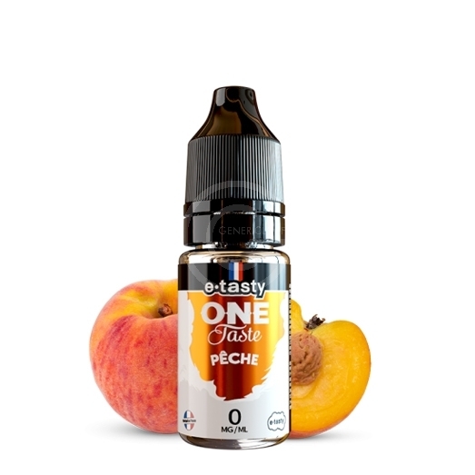 E-liquide petit format 10ml Pêche de la gamme "One Taste" de chez e.tasty. Onctueuse et juteuse, cette douceur fruitée vous fera fondre de plaisir.