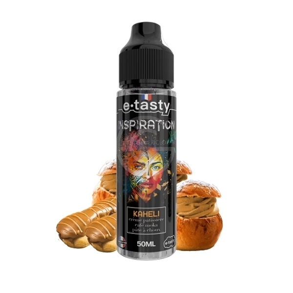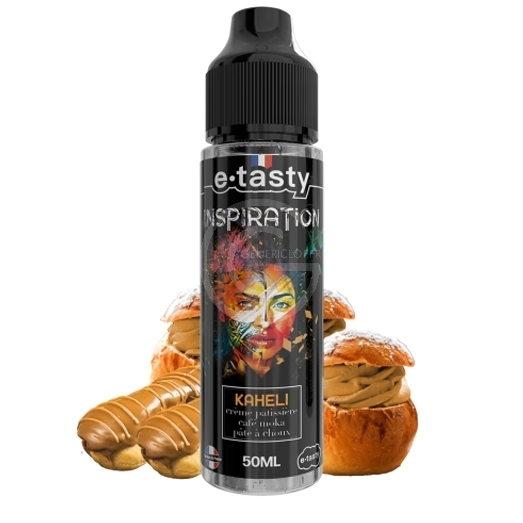E-liquide Kaheli 50ml de la gamme "Inspiration" de chez e.tasty. Guidé par l’arôme envoûtant du café, l’artiste esquisse un portrait savoureux où s’entrelacent crème pâtissière, café moka et pâte à choux..