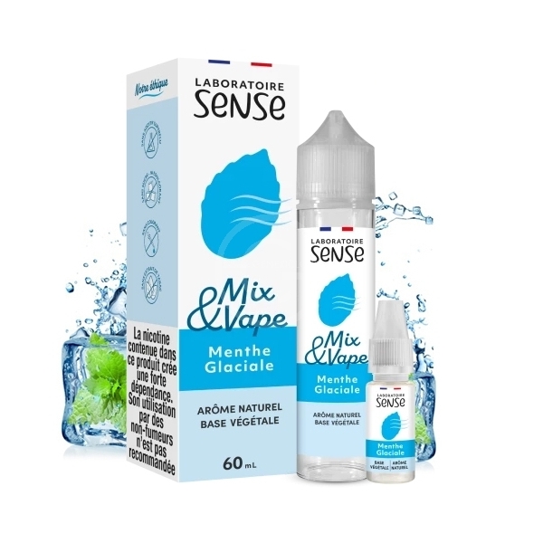 E liquide Menthe Glaciale SENSE 60ml : Note de menthe très rafraîchissante pour un effet de fraicheur intense, 100% Arômes naturels. Depuis 1997, les Laboratoires Phodé développent un savoir-faire spécifique axé sur l’olfaction. Les e-liquide Sense sont fabriqués à partir d'arômes 100 % naturels. En 3mg de nicotine, il est composé d'un flacon de 40ml de e-liquide et de deux boosters. En 6mg de nicotine, il est composé d'un flacon de 50ml de e-liquide et de un booster. La contenance finale est toujours de 60ml.