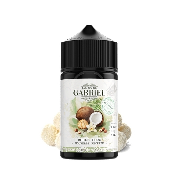 Le E-liquide Boule Coco 50ml issu de la gamme JUS DE GABRIEL pour cigarette électronique est une base de lait de coco naturel sublimée par une touche de noisettes fraîches, quelques gousses de vanille et d’une pointe de mystère … Cette recette est, comme la plupart des saveurs de la marque, réalisée sans additifs ni sucres ajoutés. Il offre une saveur naturelle et gourmande qui ravira vos papilles gustatives, un régal pour les amateurs d’arômes sucrés. À l’origine, la recette fût créée en 2015 par le fondateur de la marque, après avoir été inspiré par ses vacances passées sous le soleil des tropiques. Mais en Septembre 2020, suite aux plébiscites de nombreux clients, pour une formule encore plus gourmande, la nouvelle version est née.