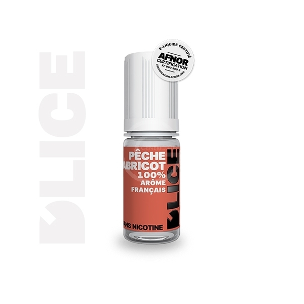 DLUO: 02/2026 - Le e-liquide Pêche Abricot D'lice associe à la perfection la douceur sucrée de la pêche et la rondeur parfumée de l'abricot. Un mélange fruité et équilibré qui séduira les amateurs de saveurs gourmandes et estivales. Fabrication Française et arômes Français. PG/VG: 80/20